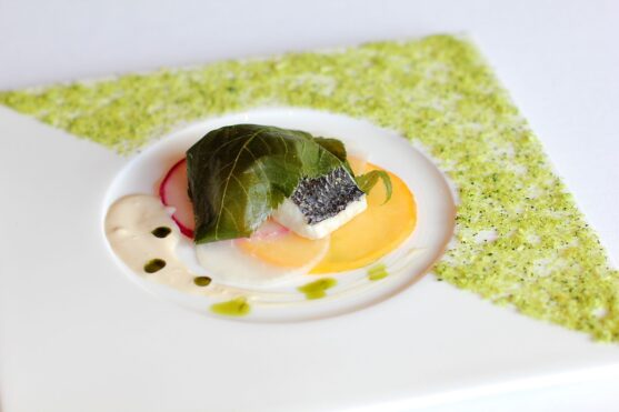 桜鱒と帆立のムースを包んだ春キャベツのヴァプール