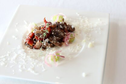 赤ワインとポルチーニを練り込んだタリアテッレ