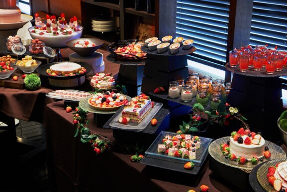 ランチコースやランチブッフェをお召し上がり後に、今回特別にご用意する苺を使ったドルチェの「ストロベリーブッフェ」をお楽しみいただけます。