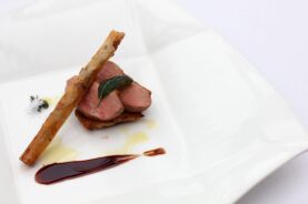 ハンガリー産鴨肉のロースト 桜の塩と桜島大根のフリコ添え