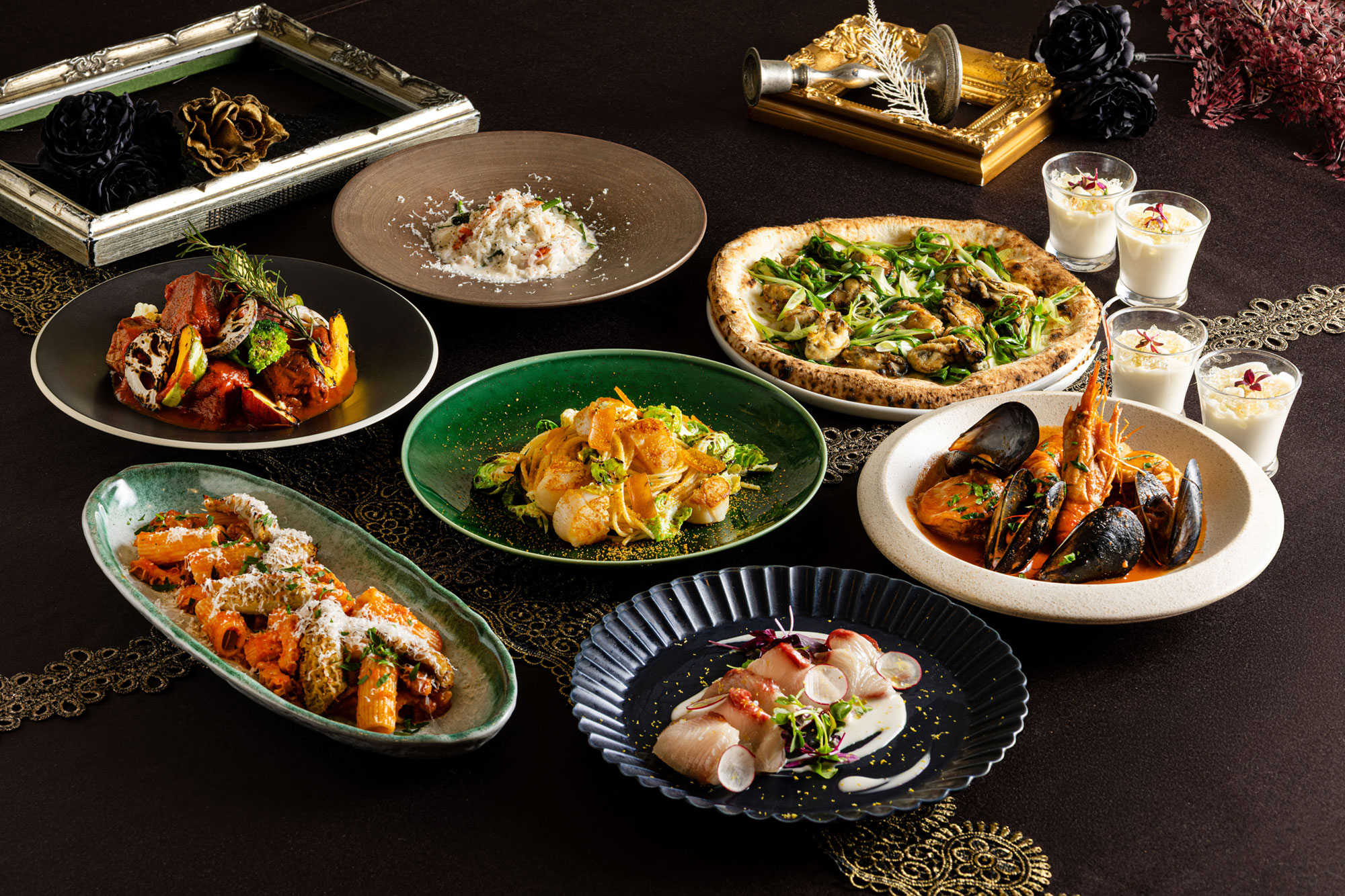 料理はXEXならではの本格イタリアンを中心に、海の幸・山の幸を贅沢に使った約60種をラインアップ。名物の自家製ローストビーフも食べ放題でご用意し、冬の味覚を心ゆくまでご堪能いただけます。