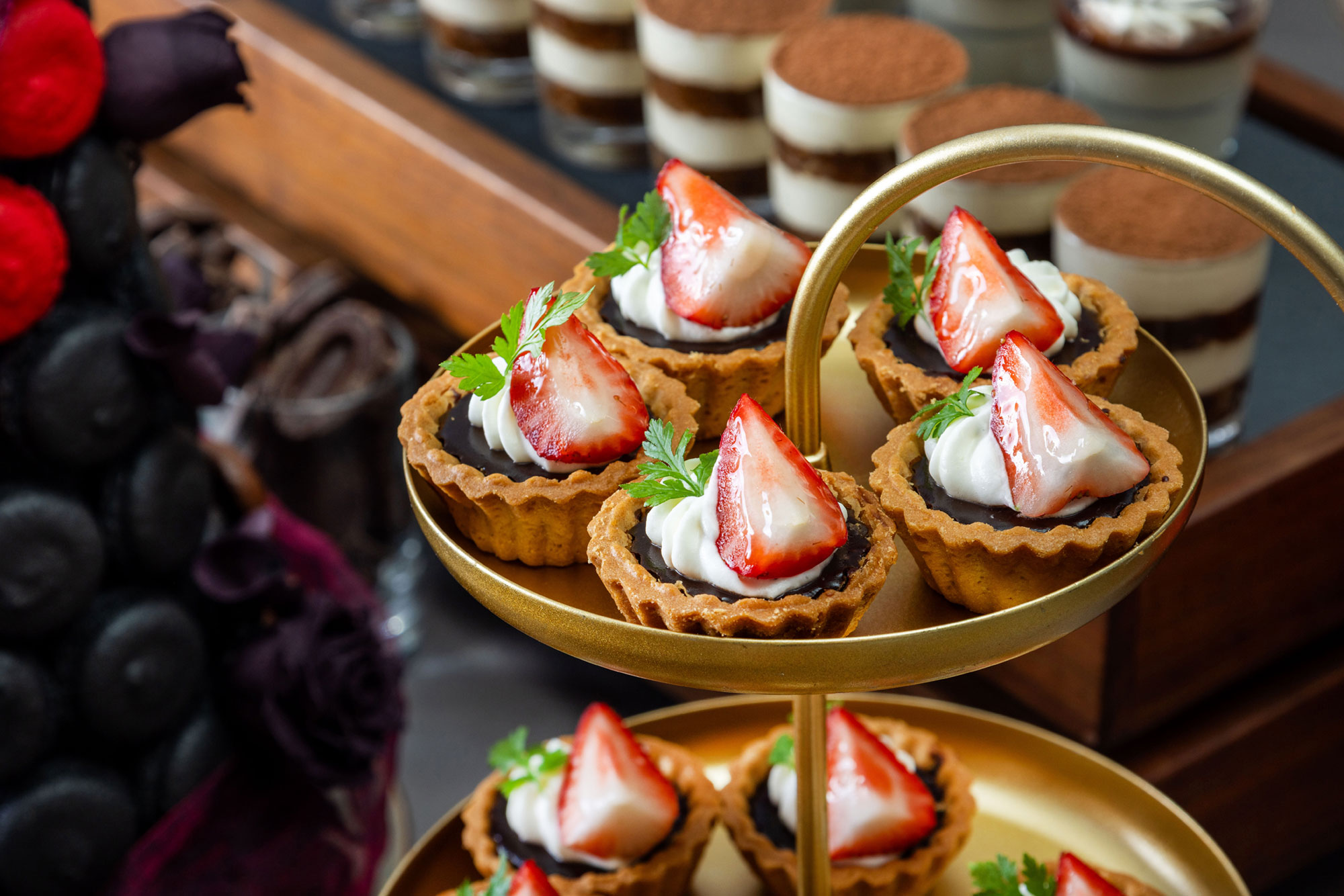 冬にいっそう甘みを増す苺と、芳醇なチョコレートが織りなす季節限定ドルチェが登場。ショートケーキやタルトなど苺の魅力をまっすぐに味わうスイーツに、チョコレートの香りとコクを重ねた多彩なアレンジが並び、ブッフェ台を華やかに彩ります。