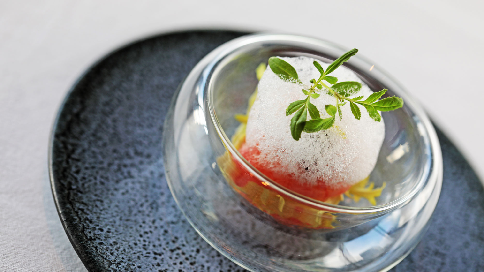 さらに鉄板焼 Anでは、小松菜のエスプーマなど、素材の香りと甘みを引き出した一皿を展開します。