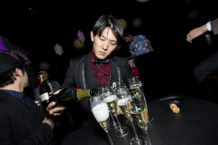 パーティーのスタートを告げるかの如く注がれるシャンパン。